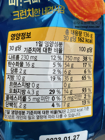 꼬북칩 크런치즈맛 영양정보