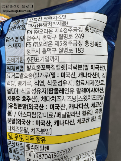 그 외에 체다치즈 시즈닝이나 치즈 분말이 들어간 것을 확인할 수 있습니다.